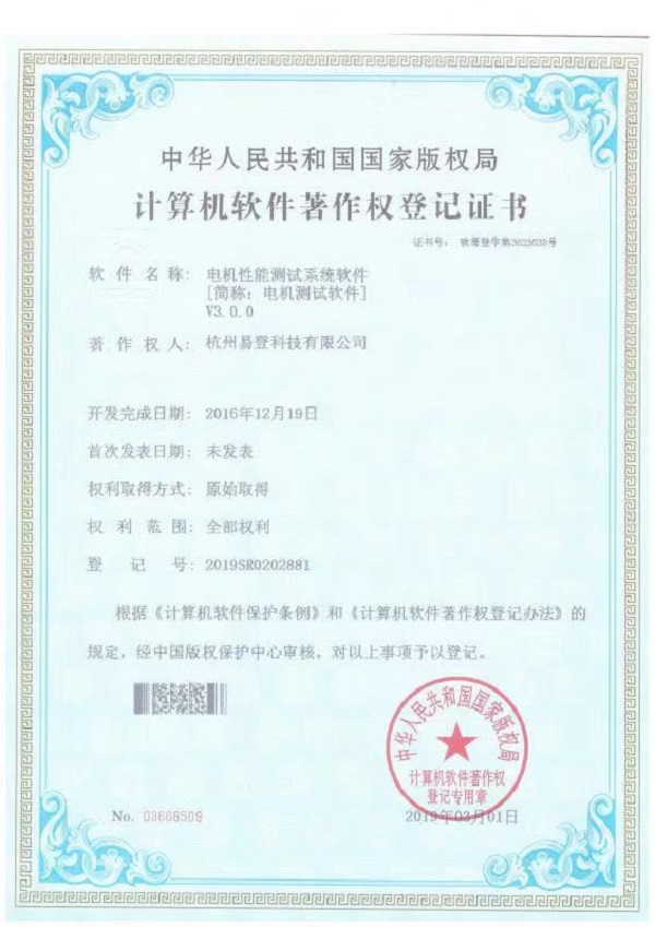 電機性能測試系統(tǒng)軟件證書